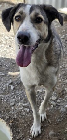 This shy girl has never been in a home so would need a patient owner to give her time to adapt – but she is friendly and sweet natured and is great with other dogs so could be homed with other dogs or as an only dog. She is only three years’ old, medium sized weighing around 23kgs and has a very happy nature that would cheer up anyone’s day! She measures 74cm to the top of her head. Emma is neutered, chipped and vaccinated and ready to find that perfect forever home.