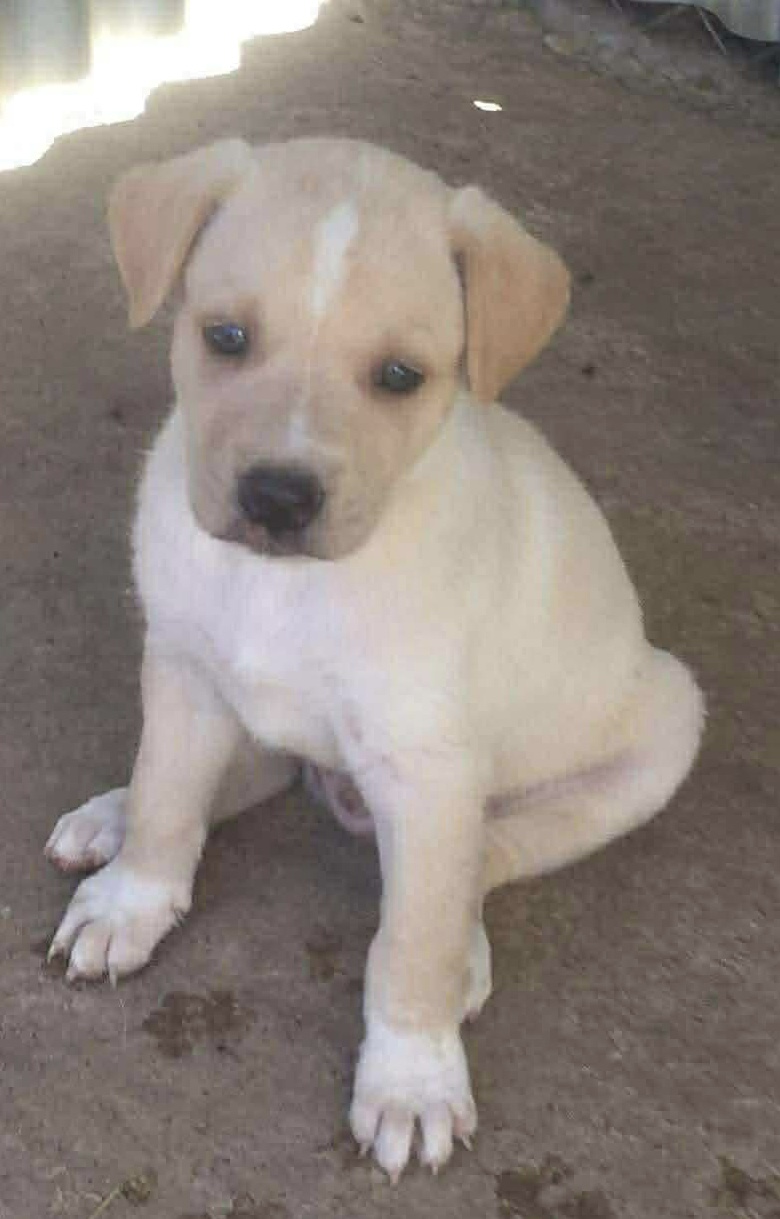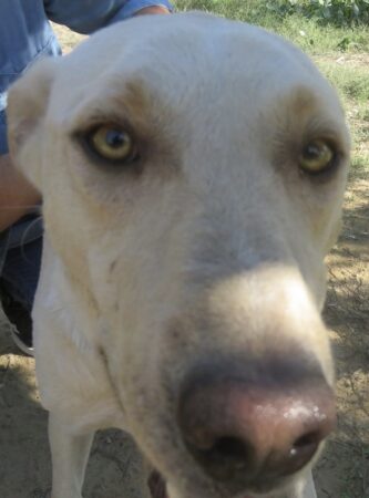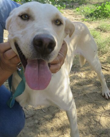 This lovely dog has been in rescue in a foster home since he was found near a river bank with his five siblings and his mother who was literally skeletal and trying to look after her pups. He is now 3.5 years of age and weighs in at around 22kgs. A very playful and friendly boy, he gets on well with other dogs and is people friendly too – he does need an active home as he is a fairly high energy dog. You can see a picture below of Sam as a pup! He measures around 73cms to the top of his head and 63cm to his shoulder, and is neutered, vaccinated and microchipped. His sister Elsa who certainly doesn’t resemble Sam in colour, is also looking for her forever home and is on our website.
